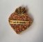 Broche ex-voto au message en cuir doré gravé " Sois la lumière " en perles brodées main inspirée du coeur sacré de Jésus.